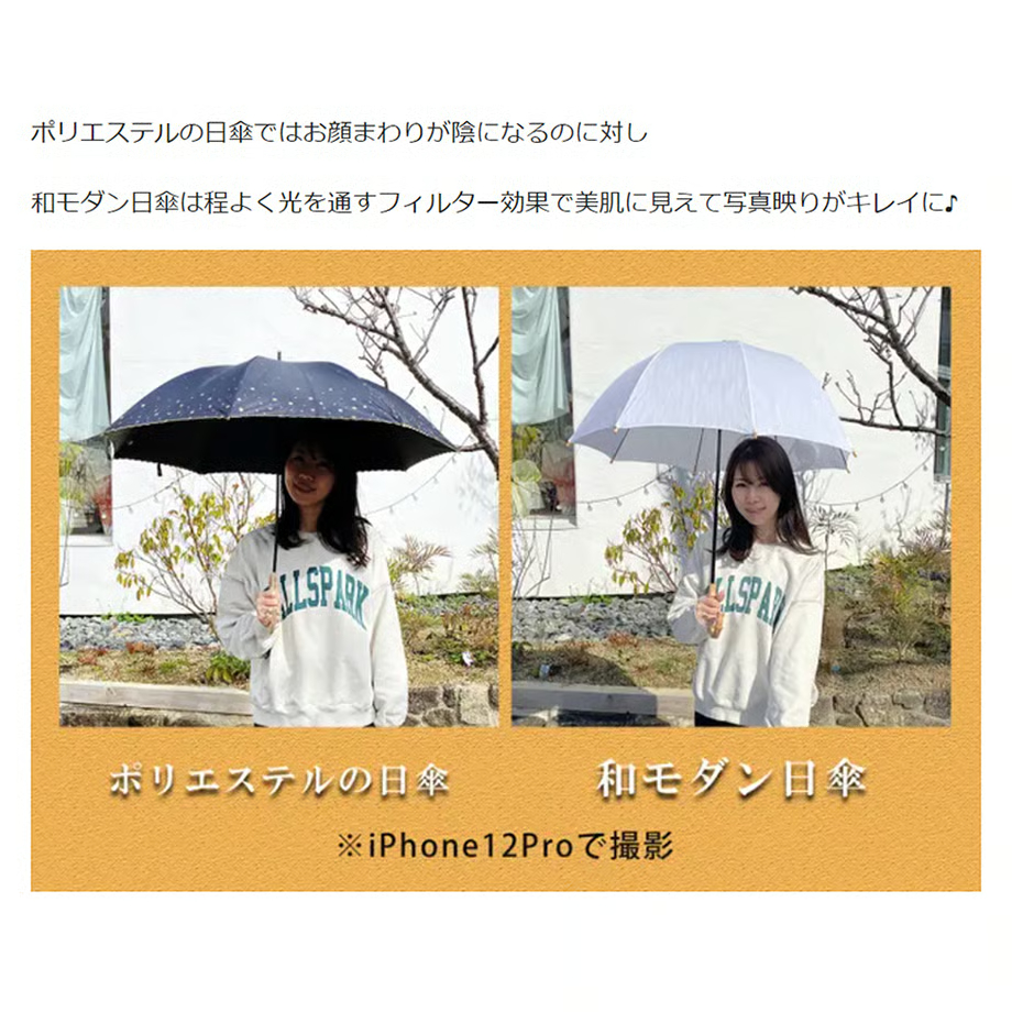 よくあるポリエステルの日傘のように光を遮断しないので顔映りを良く見せてくれます。