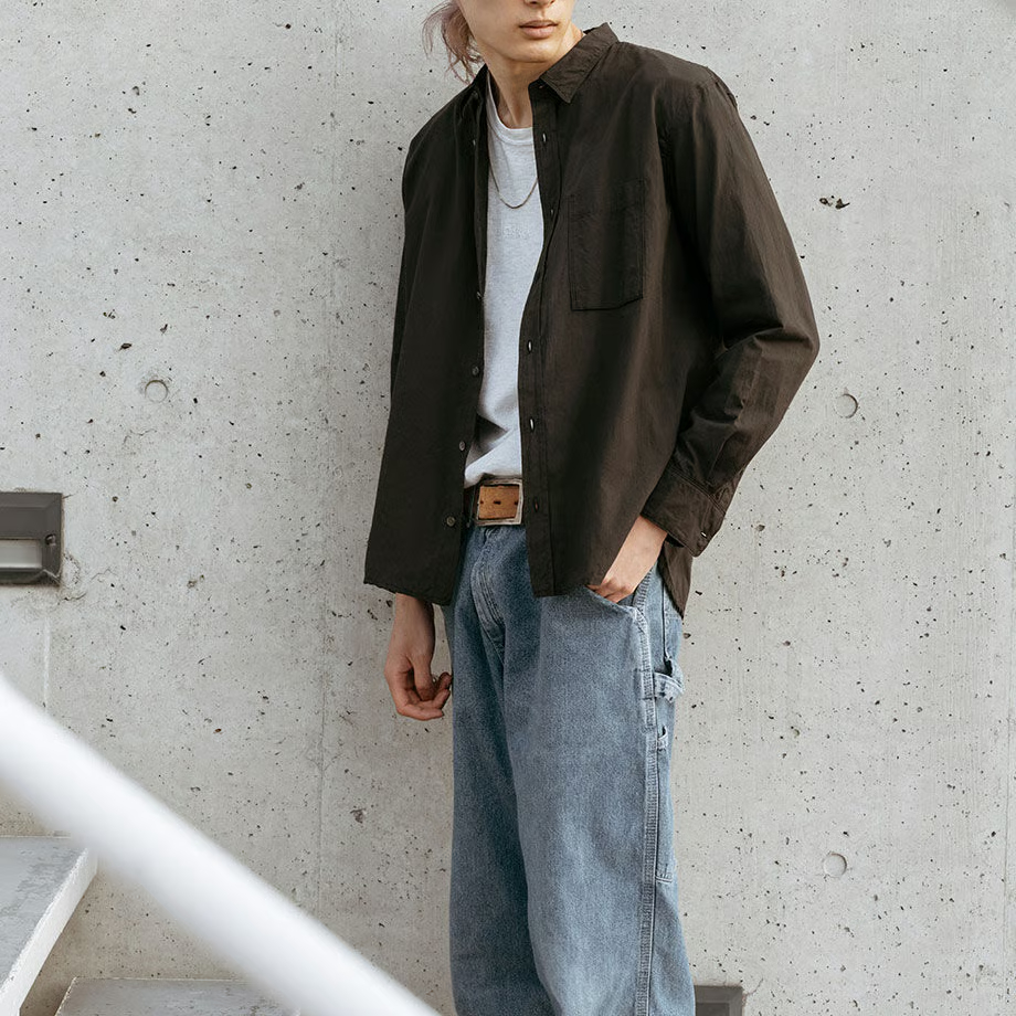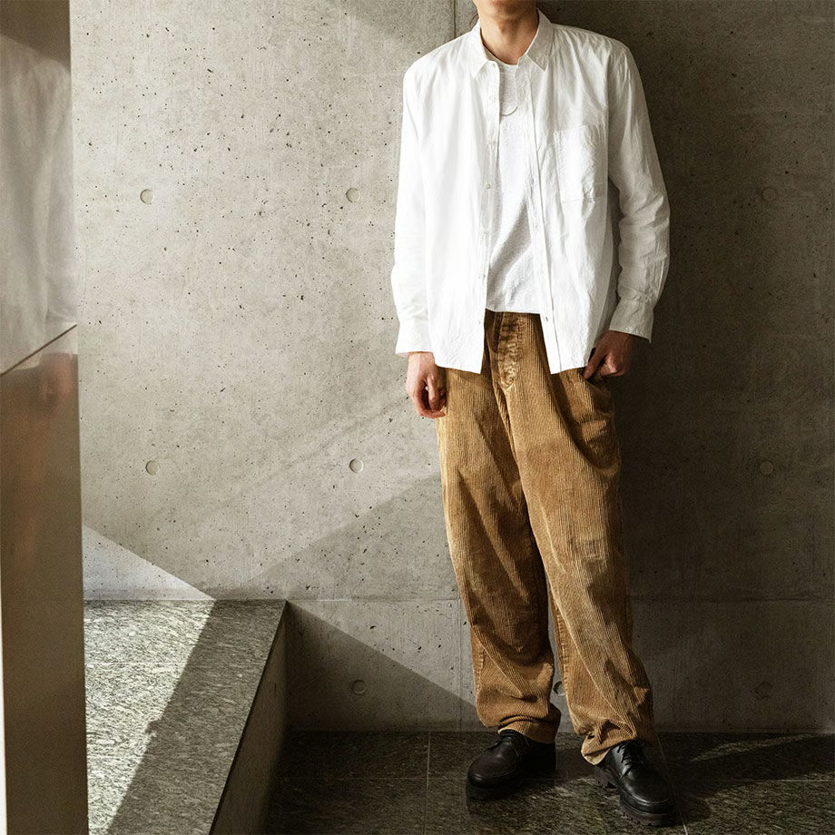 和晒 長袖シングルポケット刺繍入りシャツ