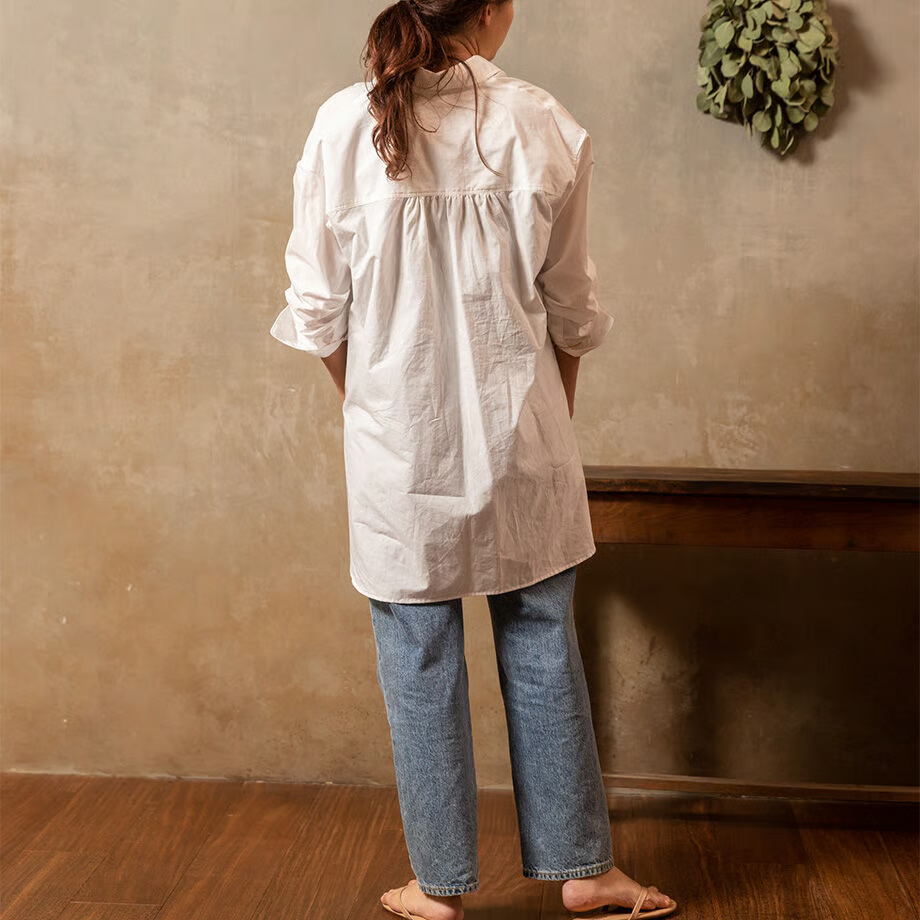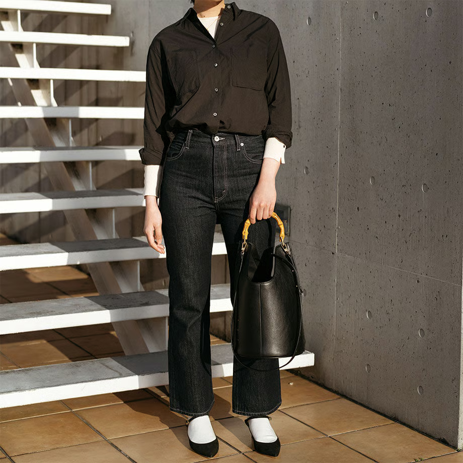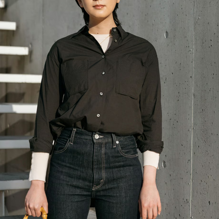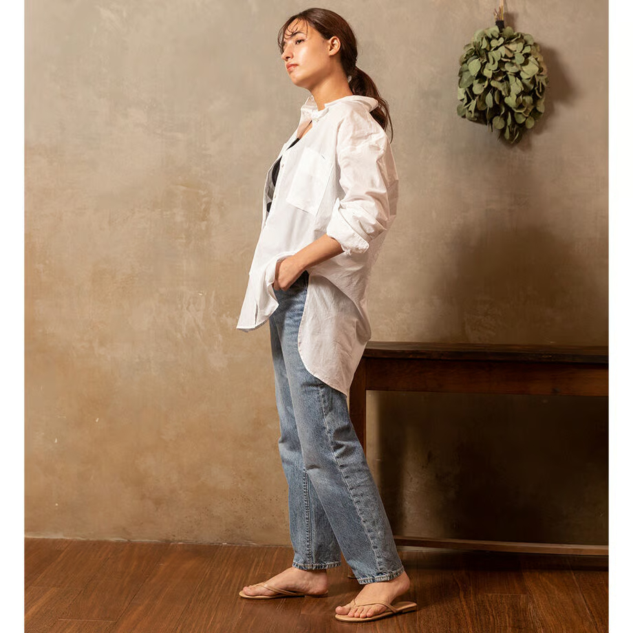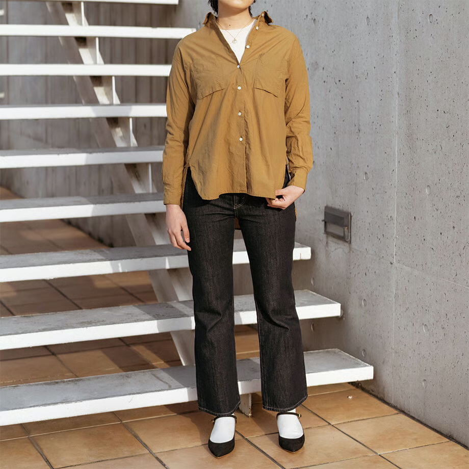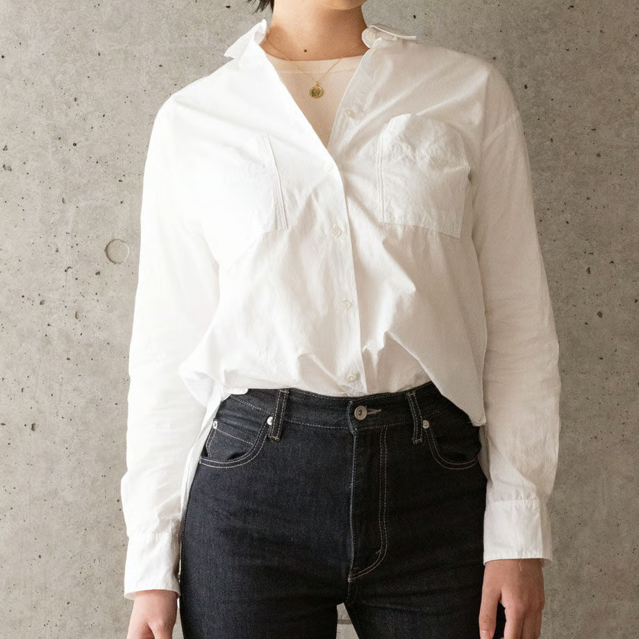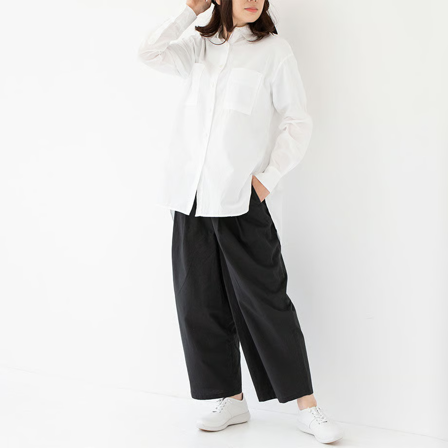 ベーシック過ぎずカジュアル過ぎない程よい上品カジュアルの素材です。ややゆったりとしたサイズ感なので、インナーでいかようにも演出できます。ボーダーのインナーやハイネックニットなどが、おすすめです。