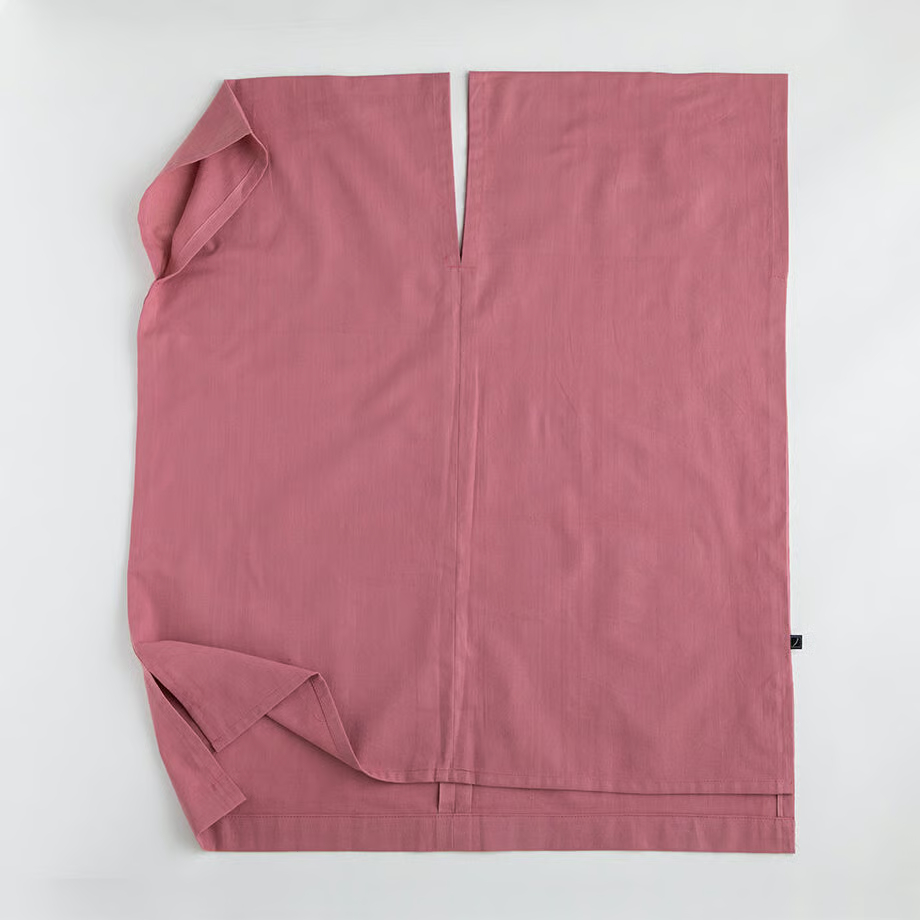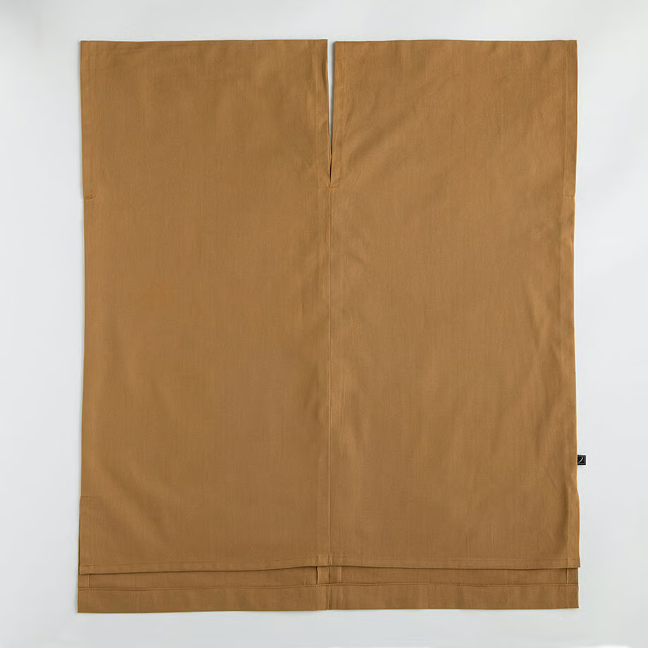 ・和晒は、織りあがった生地の不純物を落とす工程に関して時間をかけ、繊維にストレスをかけておらず、また通常は焼いてしまう生地表面の毛羽(ケバ)をそのまま残しているため、毛玉ができたり、縮んだりすることがあります。色合いや風合いを保つため、タンブラー乾燥を避けて、手洗いの後に形を整えて陰干ししてください。