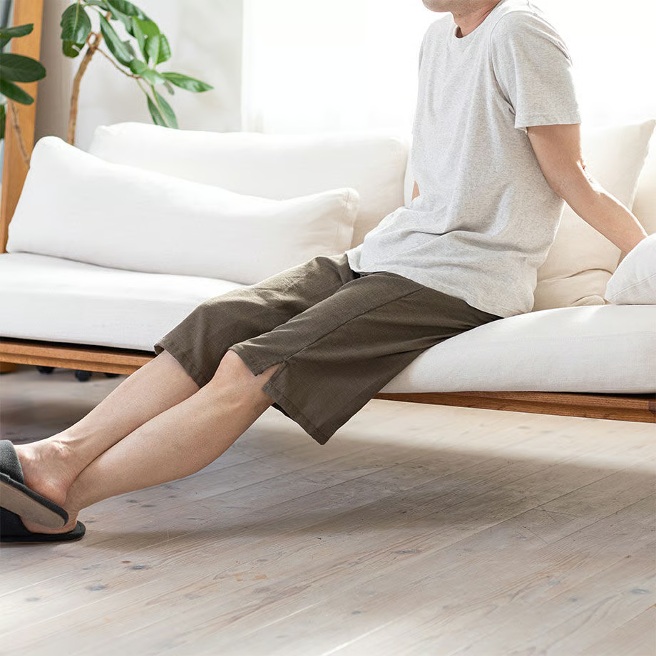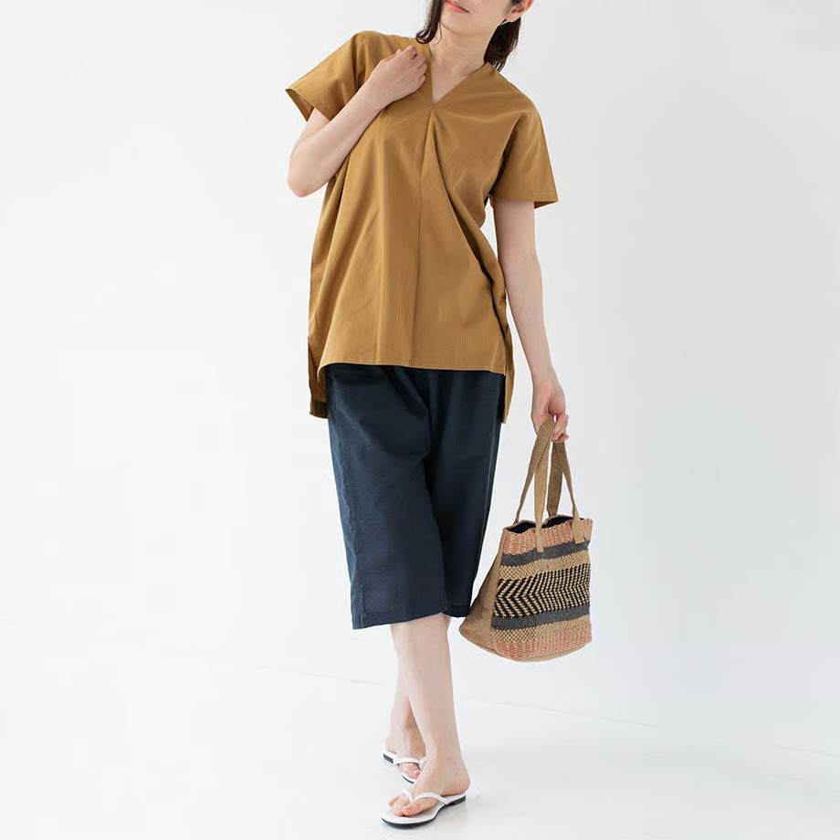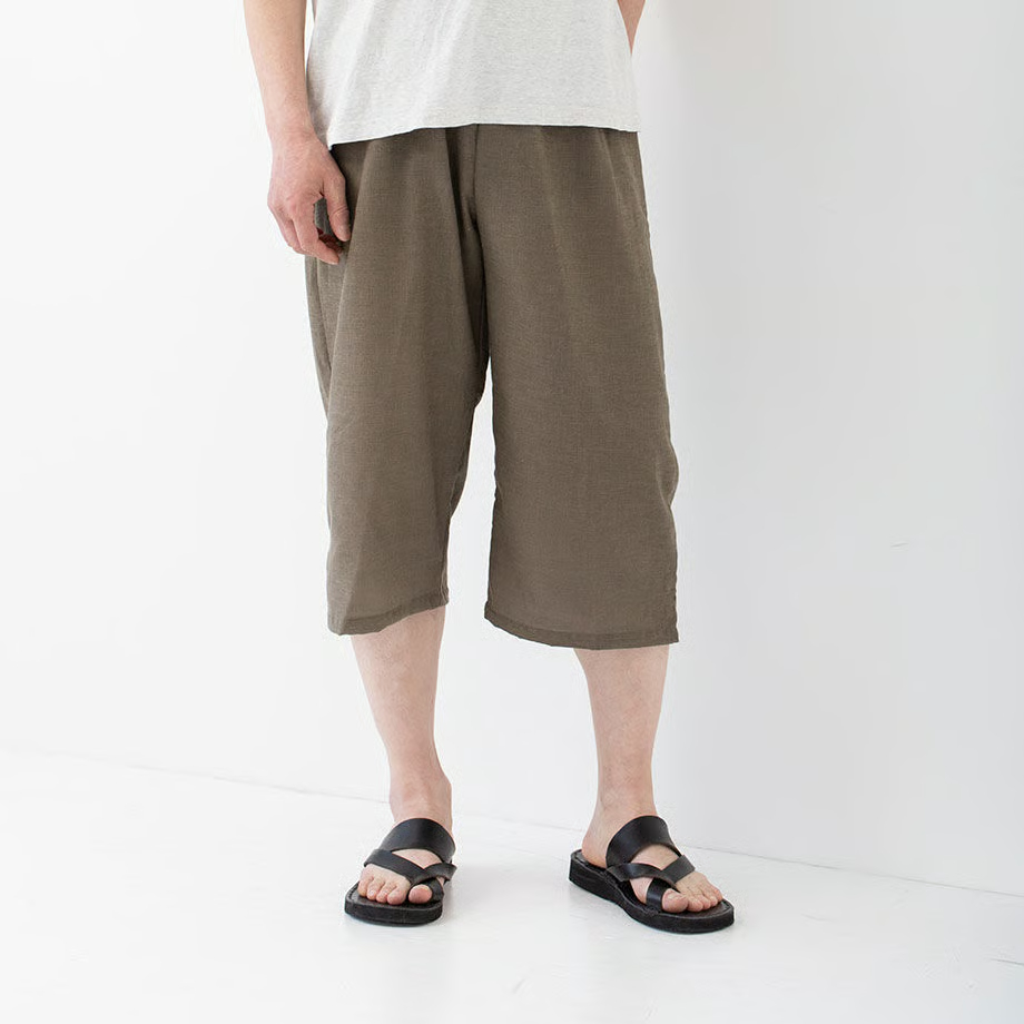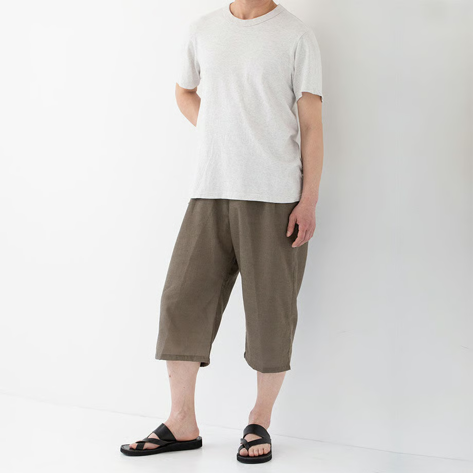 日常的に愛用し、たくさんお洗濯を重ねて和晒ならではの柔らかな着心地をお楽しみください。シンプルなカラーラインナップにしておりますので、Tシャツやシャツ、帽子やストールなど、小物とコーディネートしてみてください。お部屋でのくつろぎ着はもちろん、ちょっと近場に外出する際の“ワンマイルウエア”としても大活躍です。