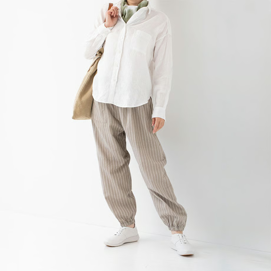 また、シンプルな色柄ですので、お気に入りのトップスや小物とコーディネートして、ちょっとした外出時に着たい“ワンマイルウェア”としても。