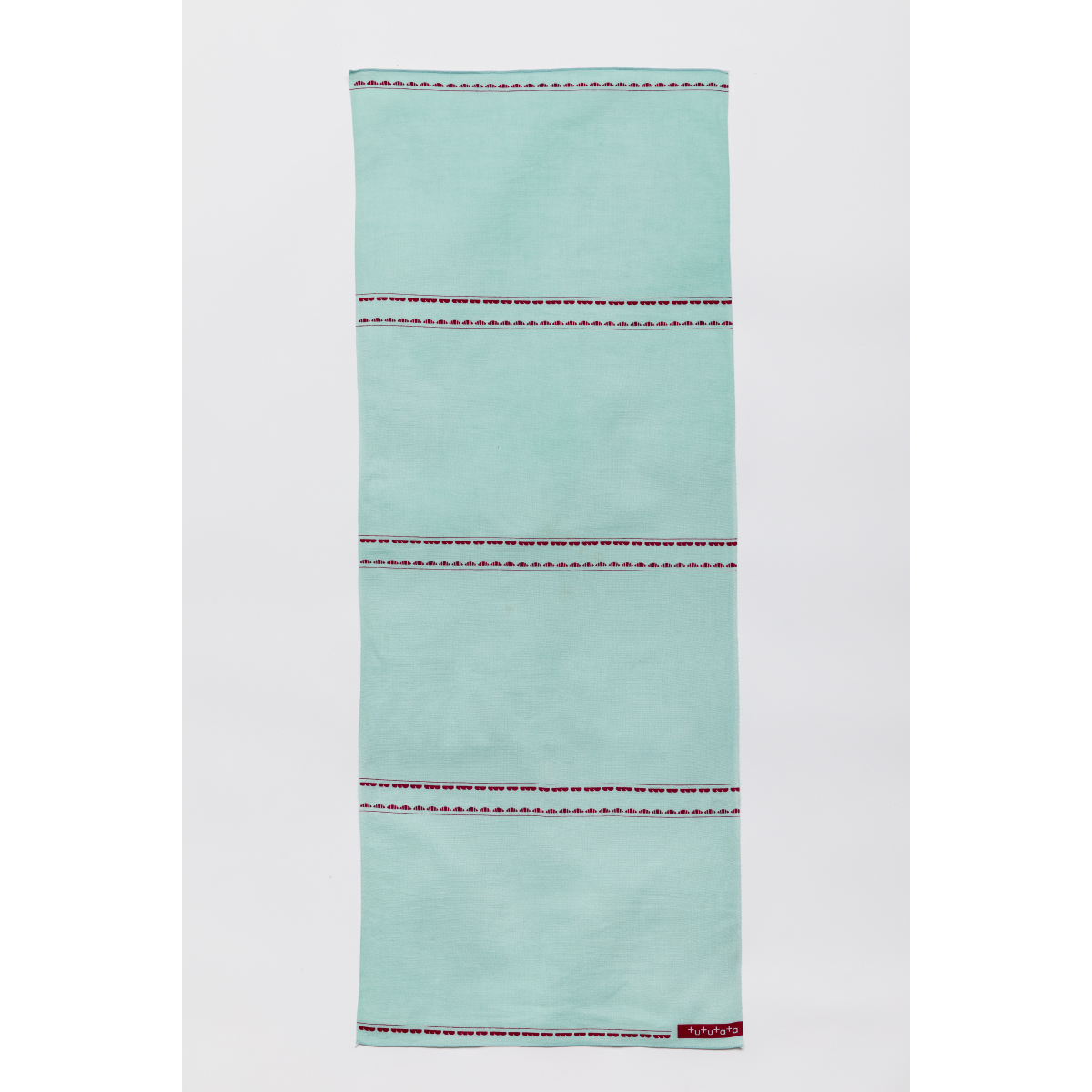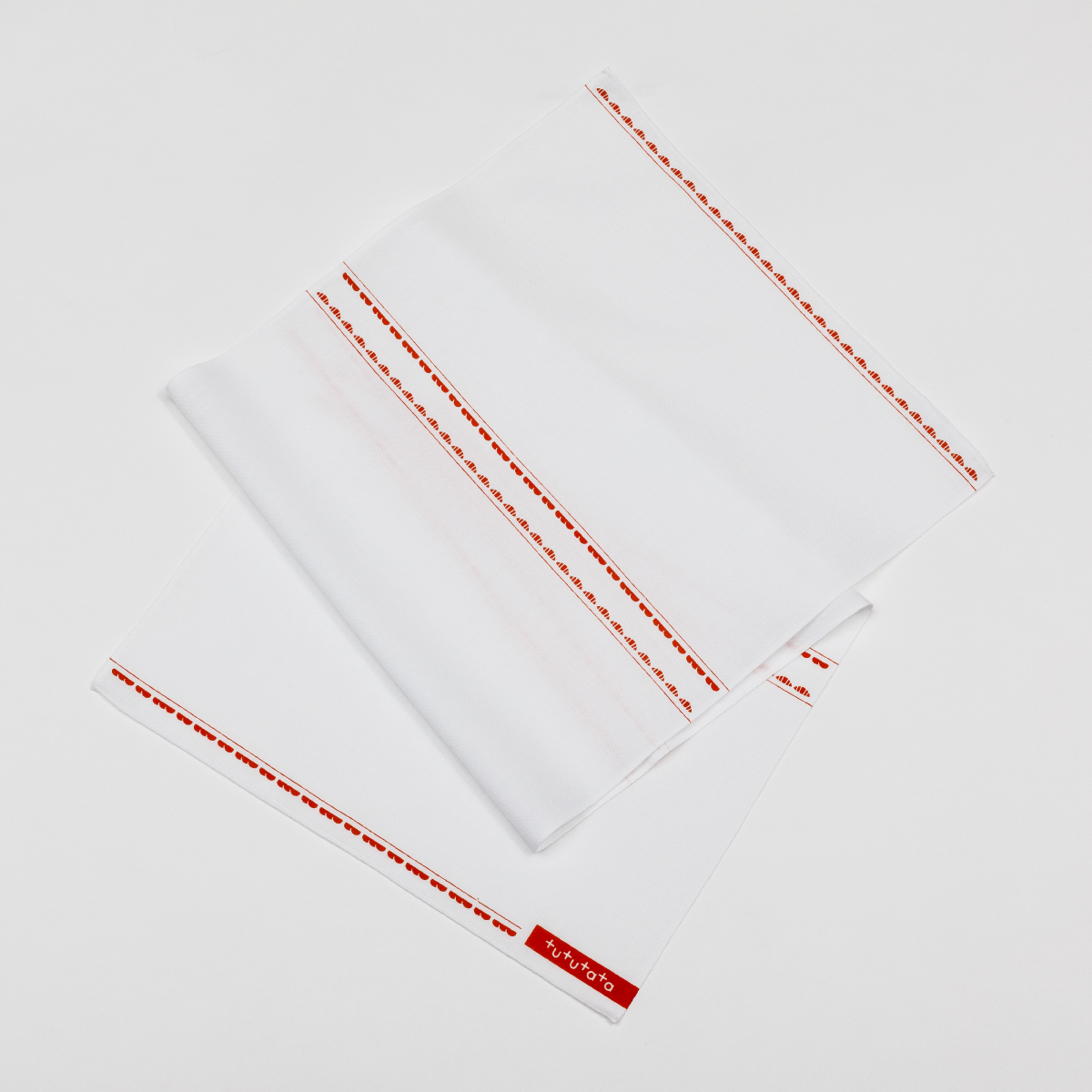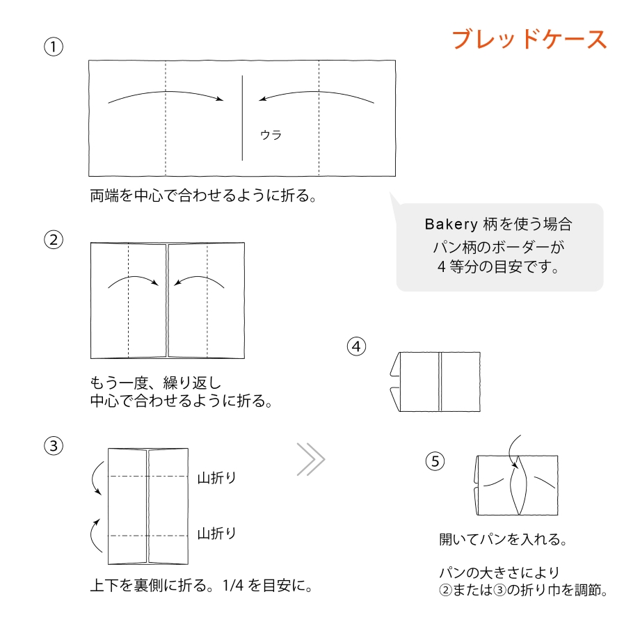 焼き立てパンの湿度調整にも使えるのが和晒手ぬぐいの優れたところ。だからパンをサーブするときの包みを考えました。パン柄のボーダーを目安にレシピ通りたためば簡単に出来上がります。ひと工夫でワンランク上の朝食をお楽しみください。