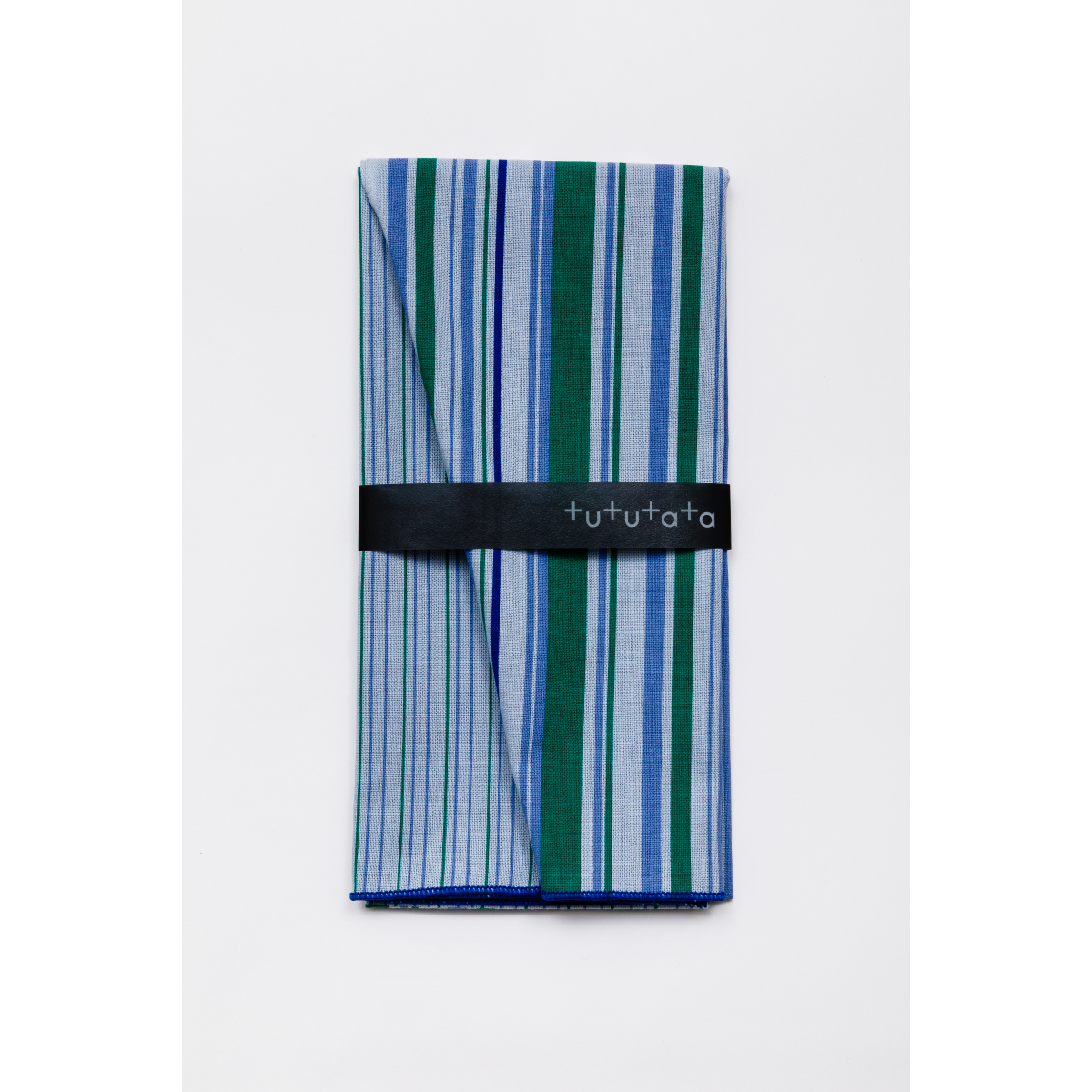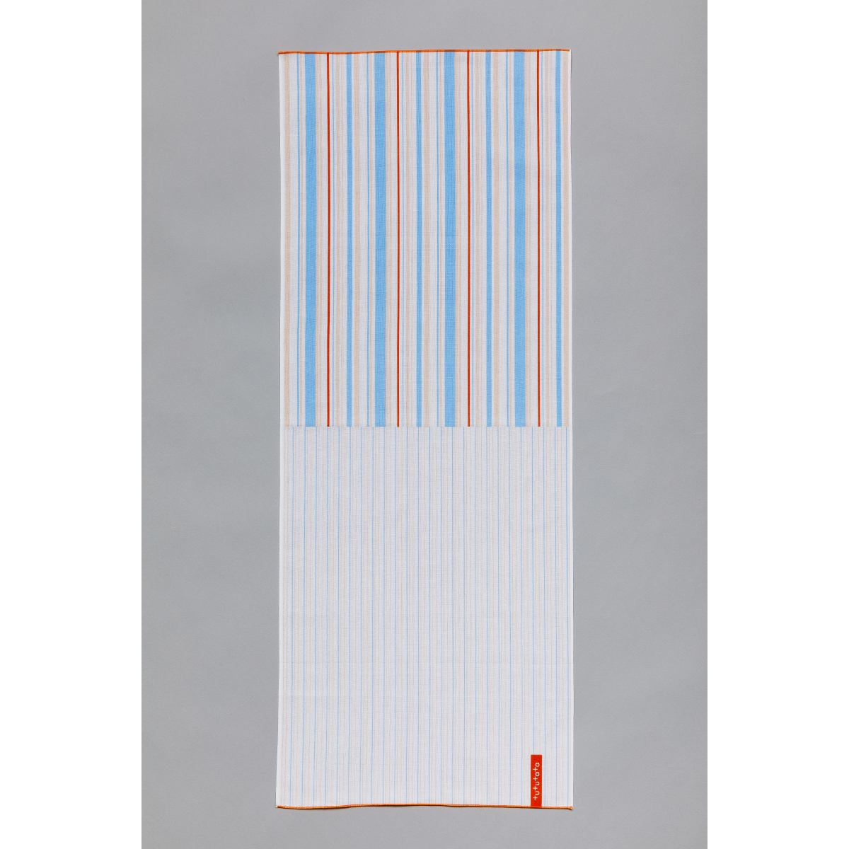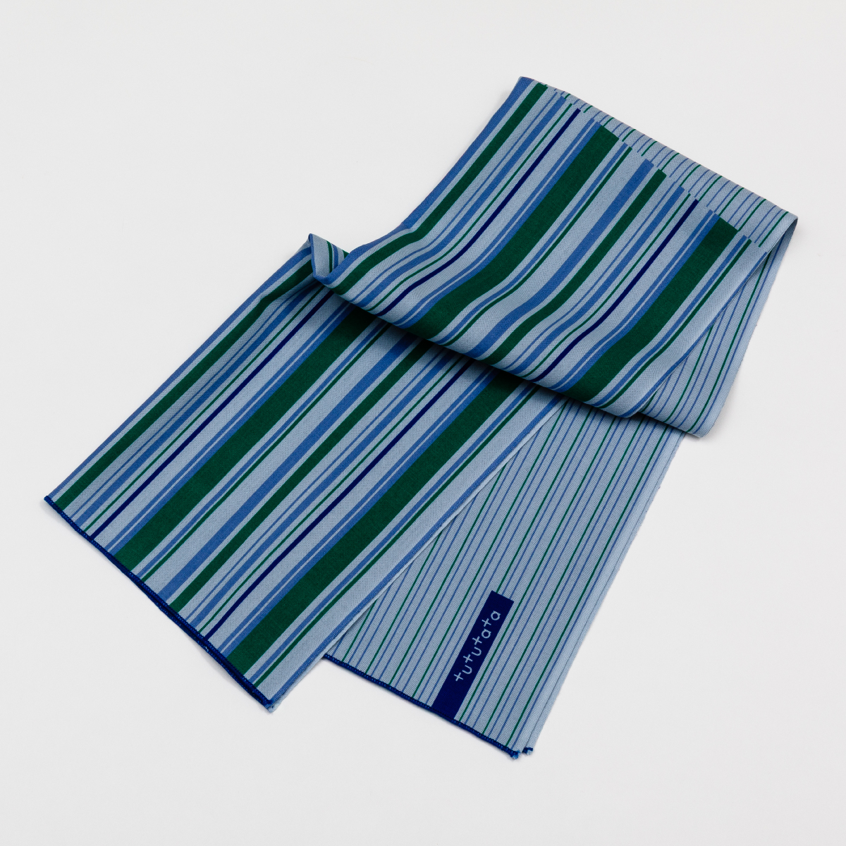 1枚で2つのストライプを楽しめるシンプルで使い勝手のいい手ぬぐい。半分に折って、食事の時のおしゃれ着の汚れ防止に。どちらの柄を使うかはその時の気分で。ビジネスでもオフタイムでも使える、男性にもおすすめの色柄です。