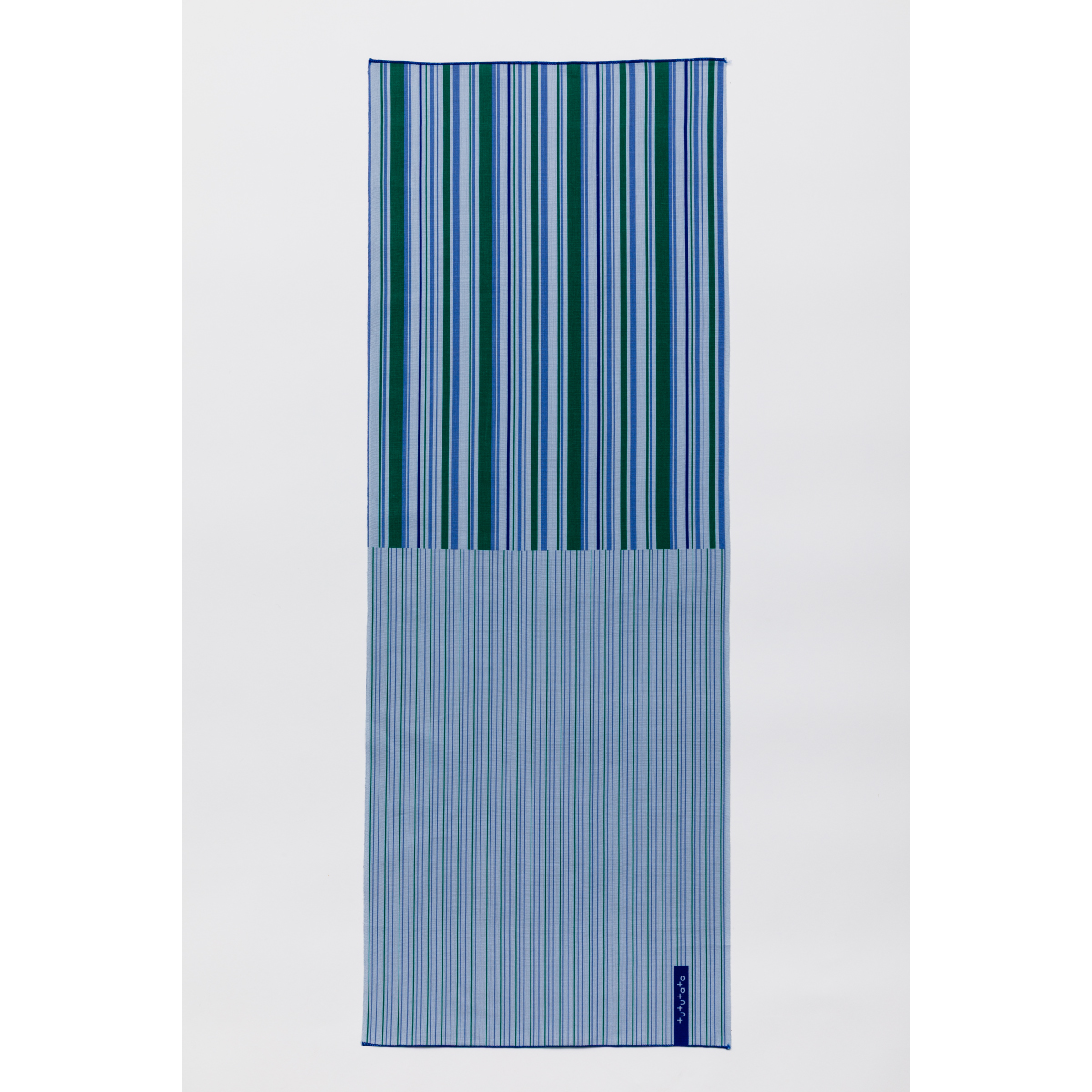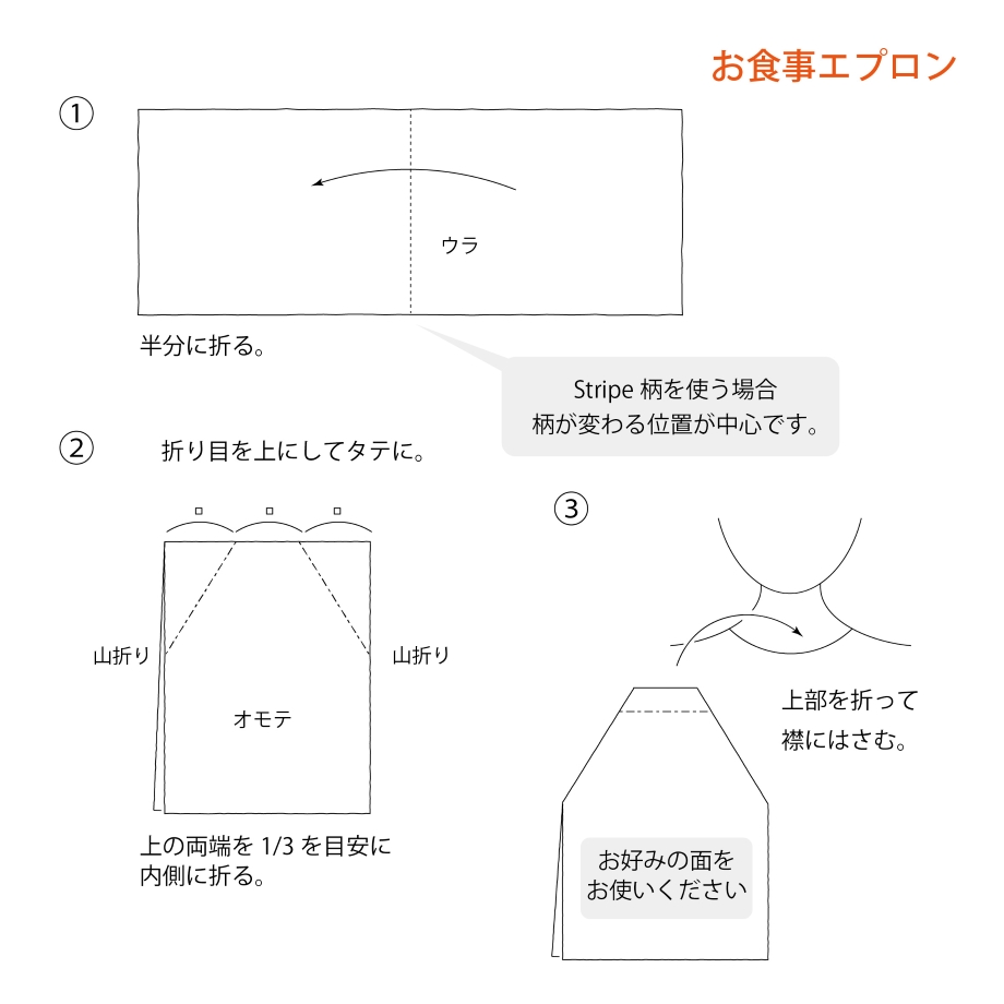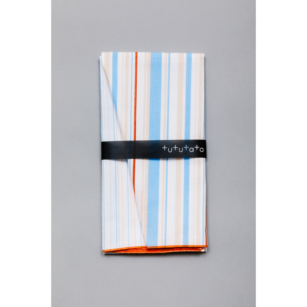 1枚で2つのストライプを楽しめるシンプルで使い勝手のいい手ぬぐい。半分に折って、食事の時のおしゃれ着の汚れ防止に。どちらの柄を使うかはその時の気分で。ビジネスでもオフタイムでも使える、男性にもおすすめの色柄です。