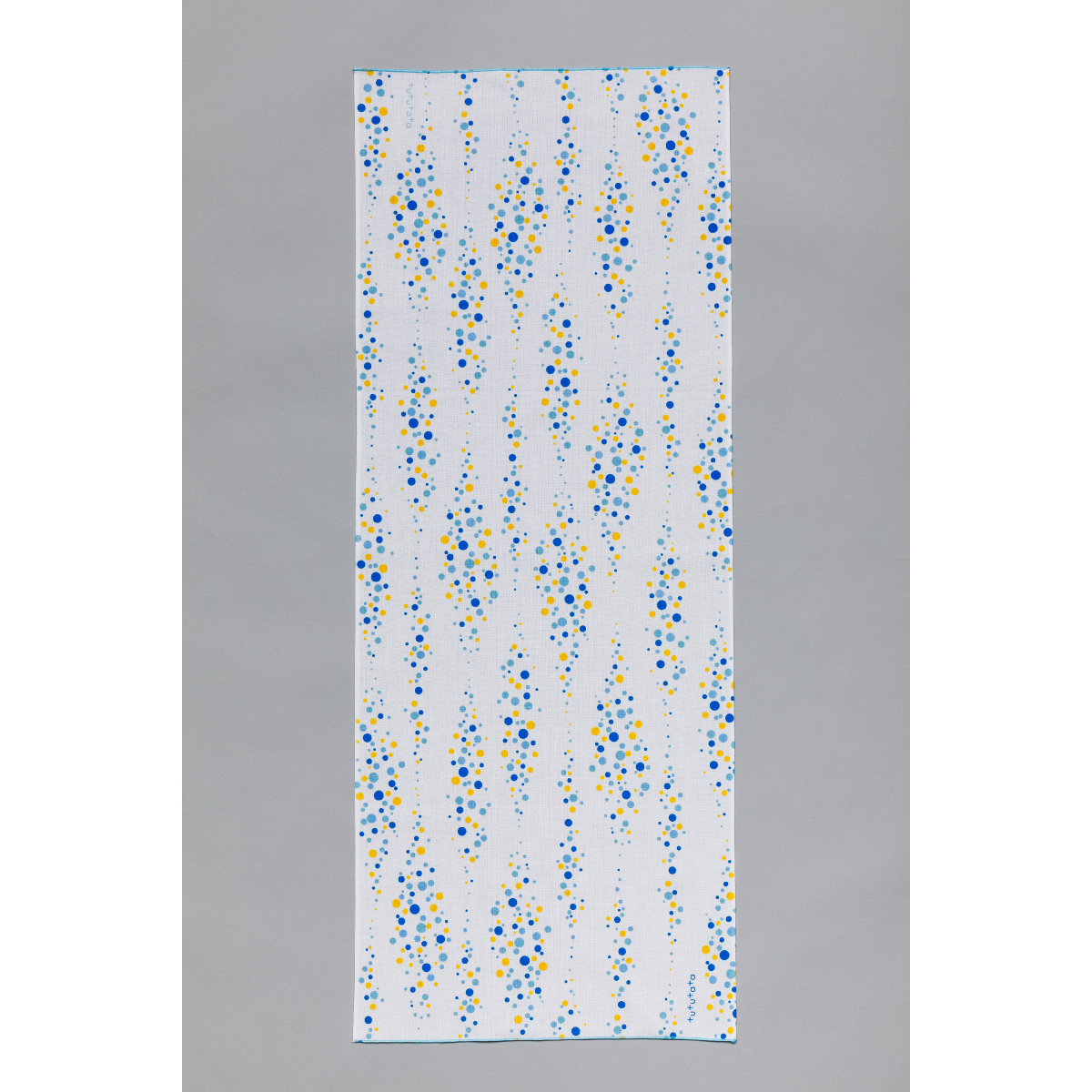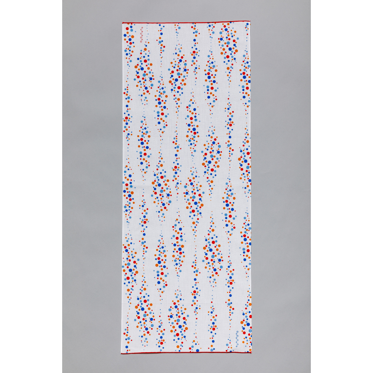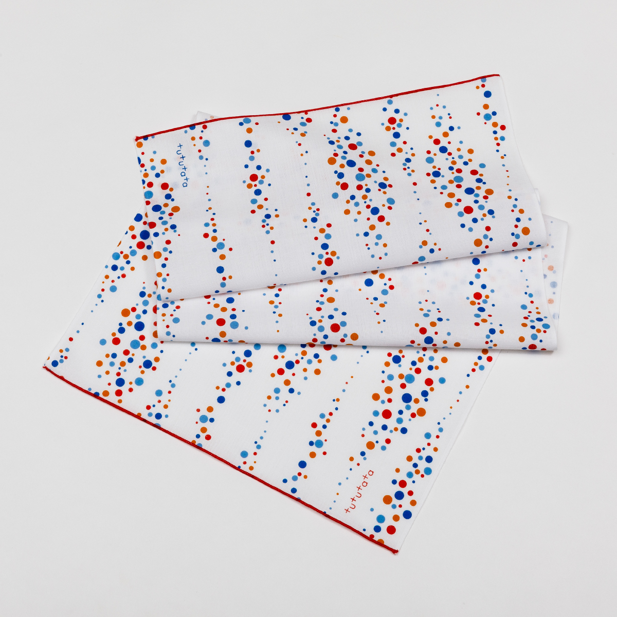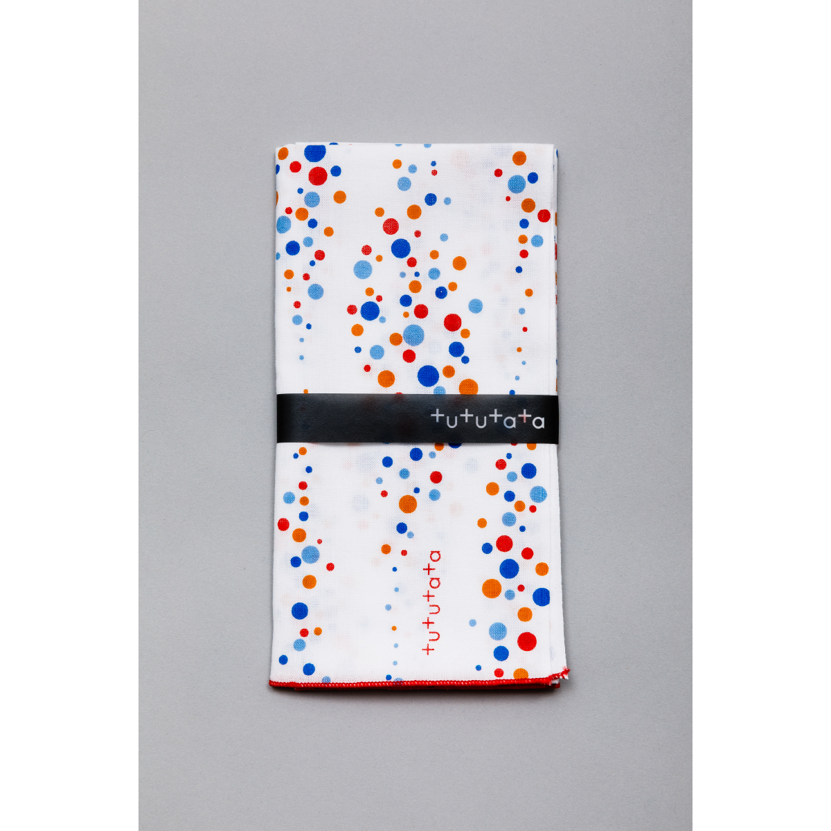 バスタイムでの使用をイメージしたカラフルな水玉模様。厚手で吸水力抜群、長さはしっかり、なのにタオルよりコンパクト、なので温泉でもサウナでも大活躍しそう。リラックスした体と心にうれしい手ぬぐいです。